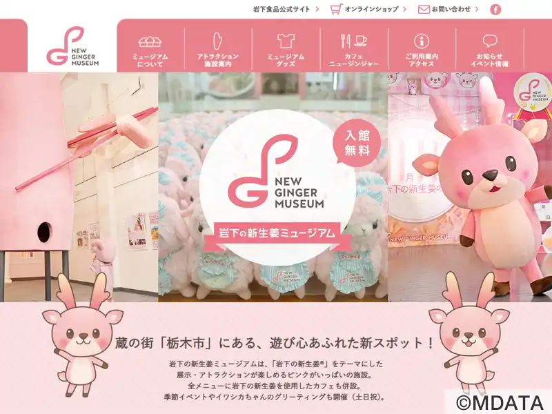 栃木市にある「岩下の新生姜®」をテーマに展示やアトラクションがあるミュージアム。2015年、岩下記念館を改修して、子どもから大人まで楽しめる、ピンクが基調の色鮮やかな施設にリニューアルした。パールピンクのグランドピアノを備えたイベントステージがあり、季節ごとのイベントや音楽ライブ、土・日・祝日には「イワシカ®」ちゃんのグリーティングも開催している。岩下の新生姜を使用したメニューのカフェも併設する。