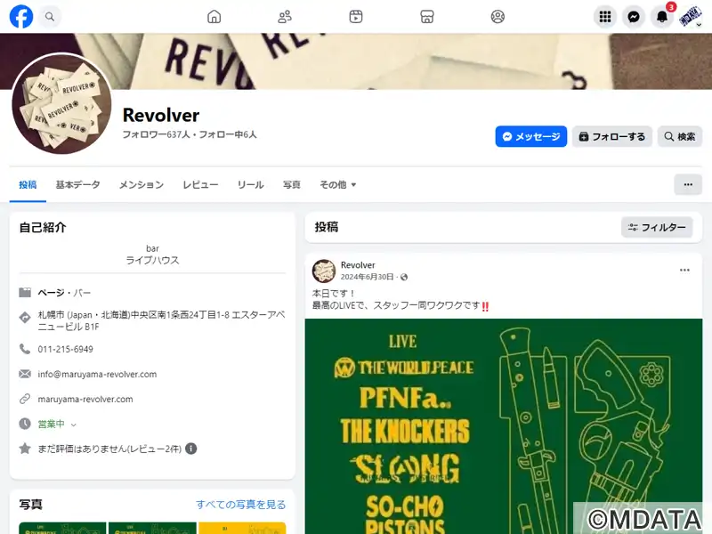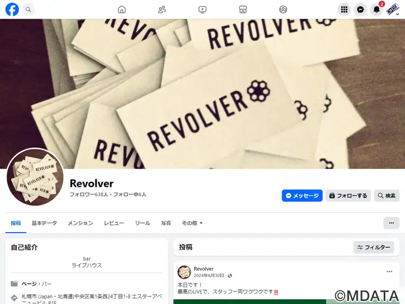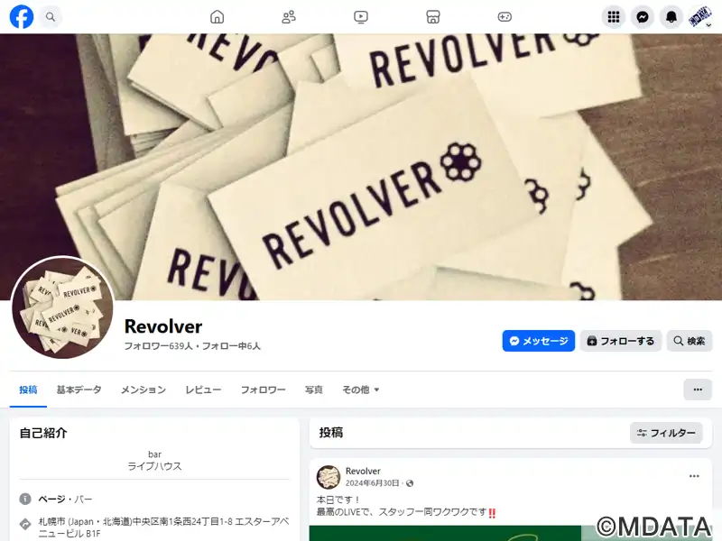 円山公園駅から徒歩3分にあるバー&イベント施設。左側がBARスペースのRevolver、右側がフリースペースのRevolver 909に分かれている。2007年にオープンし、音楽イベントを中心に、スタジオ、ギャラリー、パーティー等の様々な用途で自由に利用可能。店内は、出演者と客とが同じ目線となる、親しみやすさが魅力。キャパシティは50席で、弾き語りからバンドライブ、DJイベント、パーティー等に使用可能。