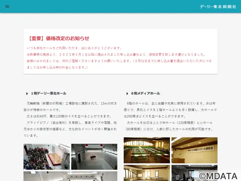 | キャパ・定員 | デーリー東北ホール(1階)120席 メディアホール(6階)230席 |