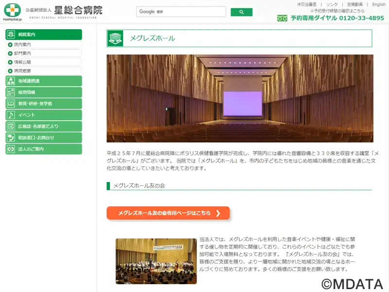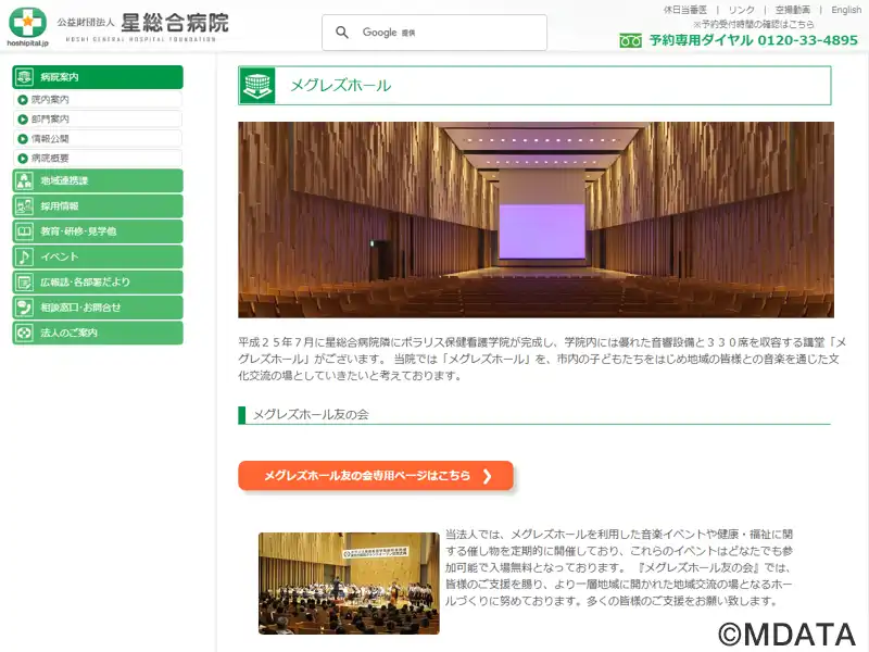 郡山の美術館通り沿い、星総合病院ポラリス保健看護学院内にある講堂。2013年7月に開設して以来、地域に開かれた文化交流の場として、どなたでも参加できる入場無料の音楽コンサートや健康・福祉に関するイベントを定期的に主催している。木調のホールは、330席が収容可能。高い天井と優れた映像・音響設備を備え、震災後に富岡町文化交流センター学びの森から移設されたスタインウェイピアノD274も設置されている。