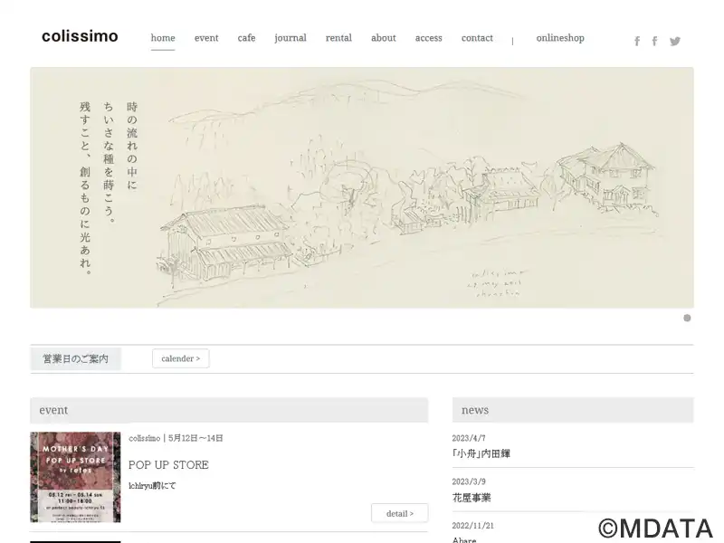 兵庫県篠山市、のどかな里山風景が広がる丹波篠山・今田にある、旧米倉庫を改装したレンタルスペース。系列店のカフェ・コリシモ(旧今田郵便局舎)から100mほどの距離に2013年オープン。篠山の文化・芸術を発信し、地域の人や観光客との交流を深める場として利用されている。木組みの高い天井から光のシャワーのように音が降り注ぐ「生」の空間を活かし、音楽ライブや映像・写真・アート展示などイベントに利用できる。