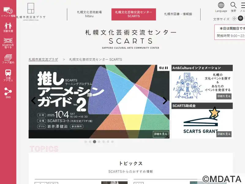 札幌市の「さっぽろ創世スクエア」に2018年にオープンした札幌市民交流プラザ内にあるアートセンター。コンサート、作品展示、セミナーなど多目的に利用できるSCARTSコート、ワークショップや講座が行えるSCARTSスタジオ、屋内広場のSCARTSモールから構成される。SCARTSコートにはセミコンピアノ・ヤマハC7Xを完備。相談から技術的サポート、企画公募や助成など市民の文化芸術活動を支援している。