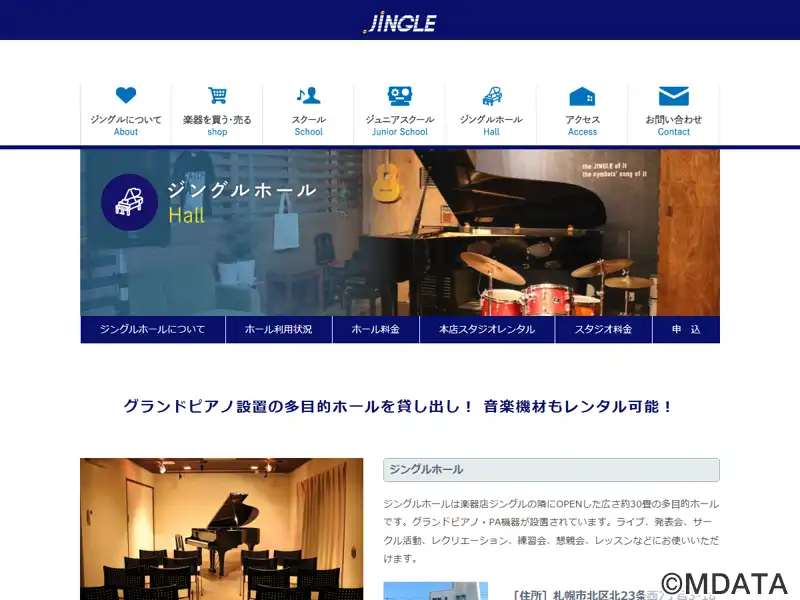 札幌北24条駅のすぐ近くに位置する楽器店、ジングル本店の西隣にある多目的ホール。1Fと2Fを合わせた30畳のスペースに、グランドピアノ(YAMAHA G2が1Fに、YAMAHA C7が2Fに)やデジタルピアノ、ミキサー、スピーカー、マイクなどのPA機器が完備されており、発表会やアコースティックライブ、練習会、イベント、サークル活動など、様々な用途に利用することができる。また、飲食物の持ち込みも可能。