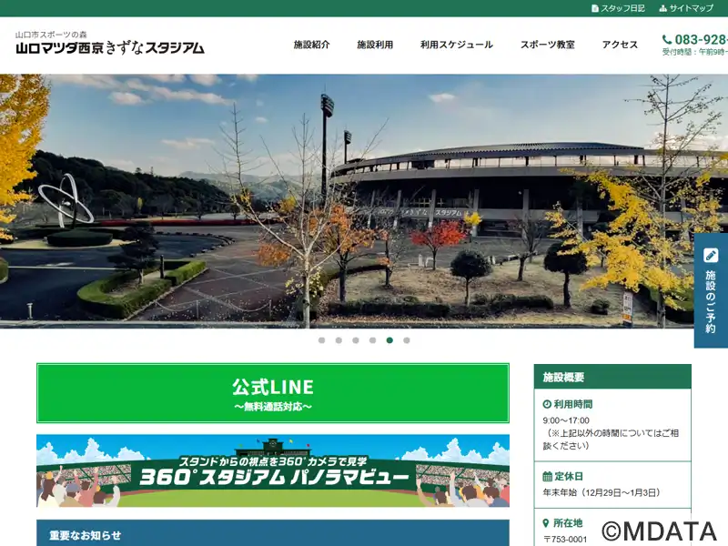 山口市に1995年に開場した両翼100m、中堅122mの外野天然芝野球場。ナイター設備、フルカラーLED式スコアボード、屋内投球練習場、放送設備などを備えた本格的なスタジアムで、プロ野球ウェスタン・リーグの公式戦や全国高等学校野球県大会などが開催されている。球場は自然に囲まれた「山口市スポーツの森」に位置し、第2球場や多目的グラウンドも併設。2018年から、山口マツダ株式会社が命名権により現愛称となる。