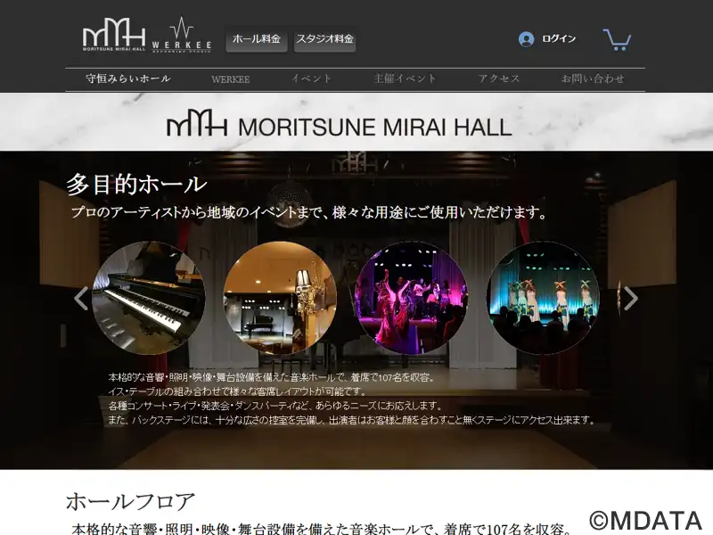北九州市のモノレール守恒駅から徒歩3分の場所に、2018年にオープンした多目的ホール。クラシック、ロック、ジャズのライブや発表会、講演会、上映会など、幅広いイベントに利用されている。スタインウェイのグランドピアノB211を常設し、本格的な音響・照明・映像・舞台設備を備えるほか、150インチのスクリーンやバリアフリー対応のスロープ、控室も完備。上階には、ホールと連携したレコーディングスタジオも併設。