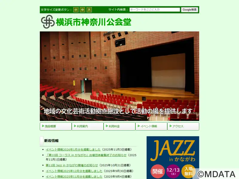 横浜市神奈川区の文化芸術活動の拠点施設として1978年に開館した公会堂。2018年に改修リニューアルを実施した。講堂(ホール)は、趣のあるレンガ壁の内装と、ステージを中心に扇形に配置された座席が特徴。コンサートや演劇、講演会、発表会など、幅広い用途に利用されており、広々としたホワイエ、会議室や和室も備えている。また、バリアフリー対応や再生可能エネルギーの活用など環境に配慮した設備も充実している。
