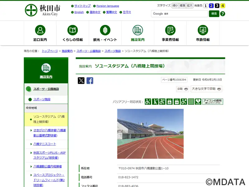 | 住所 | 秋田市八橋運動公園1-10 秋田市八橋運動公園 |
