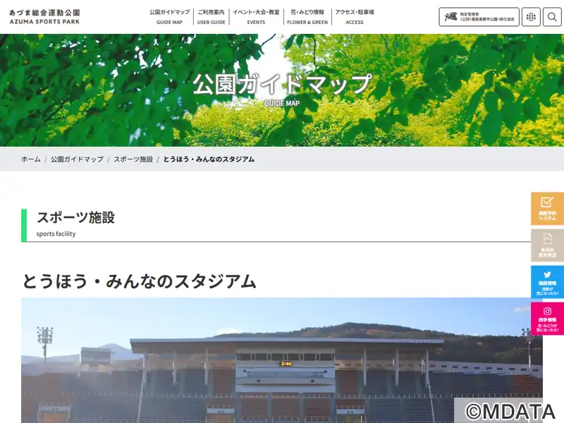 福島県のあづま総合運動公園内に1994年に開場した日本陸上競技連盟第1種公認の陸上競技場。400m×9レーンのトラックと天然芝のインフィールドを備え、照明設備や大型映像装置を完備。全国規模の陸上大会やサッカー国際試合、福島ユナイテッドFCのホームスタジアムとしてJリーグ公式戦が開催される。各種スポーツ教室や地域イベント、研修室や会議室を活用した多目的利用も行われ、県内の交流拠点として機能している。