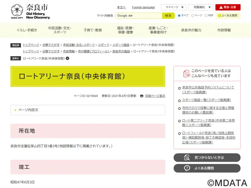 | 住所 | 奈良市法蓮佐保山4-1-3 ロート奈良鴻ノ池パーク(鴻ノ池運動公園)内 |