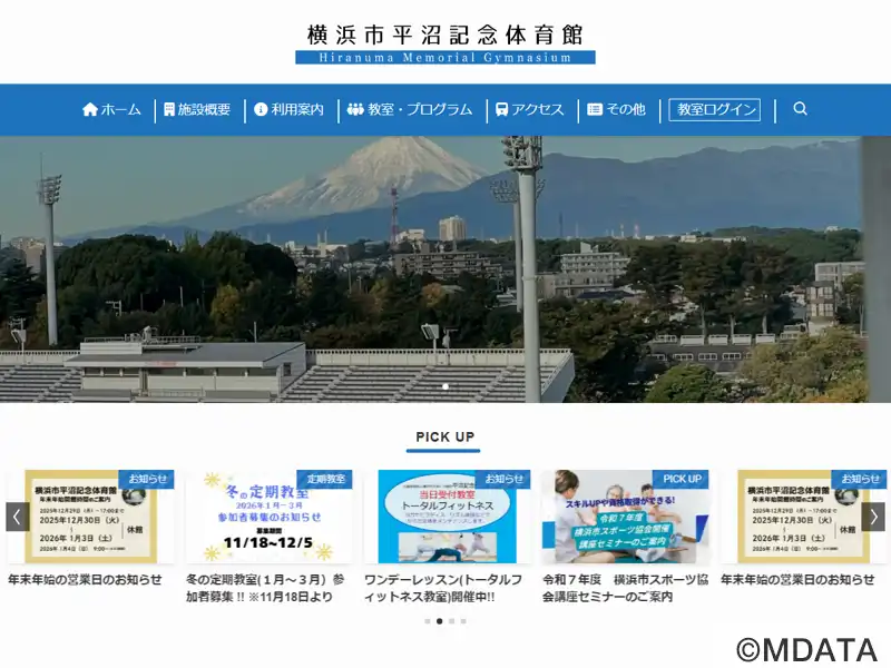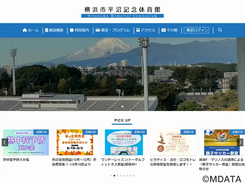 横浜市の三ツ沢公園前に1970年開館した、市民スポーツの父と呼ばれた平沼亮三氏の名を冠する体育館。通称:平体。体育室は、縦47.7m、横29.5mのフロアに、264席の観客席を備え、フットサルやハンドボール、バスケットボール、バレーボール、バドミントン、卓球など、さまざまなスポーツに利用されている。また、健康づくり教室等を行う会議室(スタジオ)、平沼亮三氏の業績を展示する資料室や展望室がある。