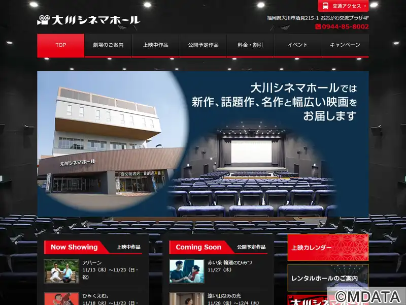 福岡県大川市「おおかわ交流プラザ」4階に2015年オープンした映画館。大型スクリーンとJBLの高品質なサウンドシステムを完備する。スタジアム形式の客席は、ゆったりとしたスペースと快適なシートが特徴。ロビーには大川市の伝統工芸である「大川組子」がデザインされ、木の温かみが漂う落ち着いた雰囲気でくつろげる。また、レンタルホールとしてトークショーやセミナー、コンサートなど様々なイベントにも利用できる。