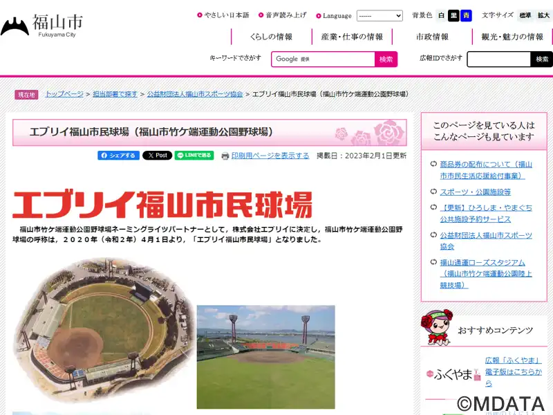 広島県福山市の竹ヶ端運動公園内に1974年開場した両翼90m、センター120mの外野天然芝野球場。約15,000人収容のスタンド、ナイター設備をもつ本格的スタジアムで、高校野球県予選や社会人・大学野球の公式戦、プロ野球のオープン戦が行われるほか、地元社会人クラブ福山ローズファイターズの活動拠点となっている。2020年から、株式会社エブリイによる命名権取得により現愛称となる。正式名、福山市民球場。