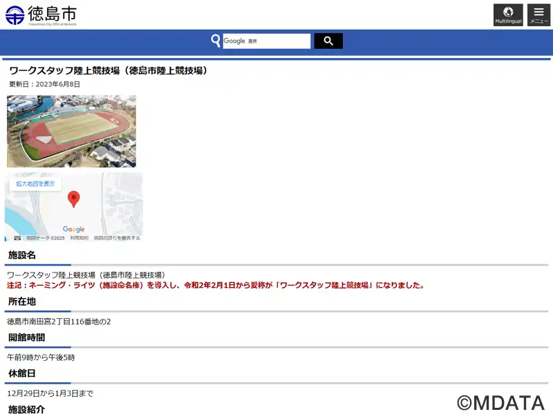 徳島市陸上競技場(正式名) |