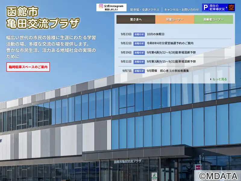 亀田支所に隣接して2020年4月オープン。亀田地区の市有5施設(亀田公民館、美原児童館、福祉センターなど)の機能を統合した多世代が集う交流拠点。講堂1・2(222㎡+168㎡)は舞台照明・グランドピアノ・プロジェクターやスクリーンを備え、演奏会や発表会、講演会など多用途に利用できる。各種サークル活動に適した体育室、交流集会室、研修室や大会議室、ふれあいホール(図書コーナー・カフェコーナー)併設。