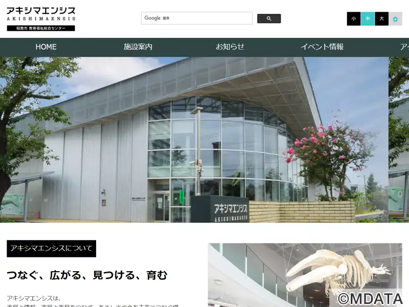 東京都昭島市の教育・文化・福祉の複合施設。つつじが丘南小学校跡地に2020年に設置され、国際交流教養文化棟、校舎棟、体育館から構成。施設名は、昭島市で発見された「アキシマクジラ」の学名に由来し、「くじらホール」には全長約13.5メートルの原寸大化石レプリカが展示されている。蔵書約40万冊の市民図書館、郷土資料室、シアター、講習・研修室など多彩な施設が整い、市民の交流や学びの場として親しまれている。