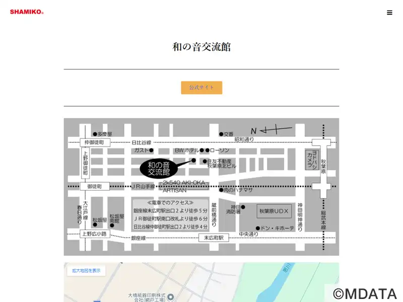 上野5丁目サファイヤストリート沿いに2019年5月オープン。宝飾パーツ専門メーカー「セベル・ピコ」が運営する、和楽器と和文化を体験して学べる5階建ての文化交流施設。三味線・箏などの和楽器、オリジナル三絃楽器「シャミコ」など展示し、試し弾きができる交流スペースのほか、和太鼓や三味線の演奏やレッスン、練習にレンタル可能な地下防音スタジオ、3Fにレンタルセミナールームを併設。