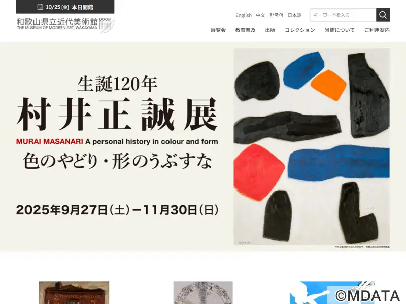 和歌山城に隣接する近代美術館。1963年に旧和歌山城二の丸跡に創設された県立美術館を前身とする。1994年に県立博物館と共に現在の建物に新築・移転した。黒川紀章設計の建築は「共生」をテーマに、伝統美を取り入れた灯籠や庇、熊野古道をイメージした散策路が特徴。1万点を超すコレクションは、明治以降の郷土作家、近代・現代版画、戦後関西前衛美術、海外美術を重点に収集。3つの展示室と充実した収蔵環境を有する。