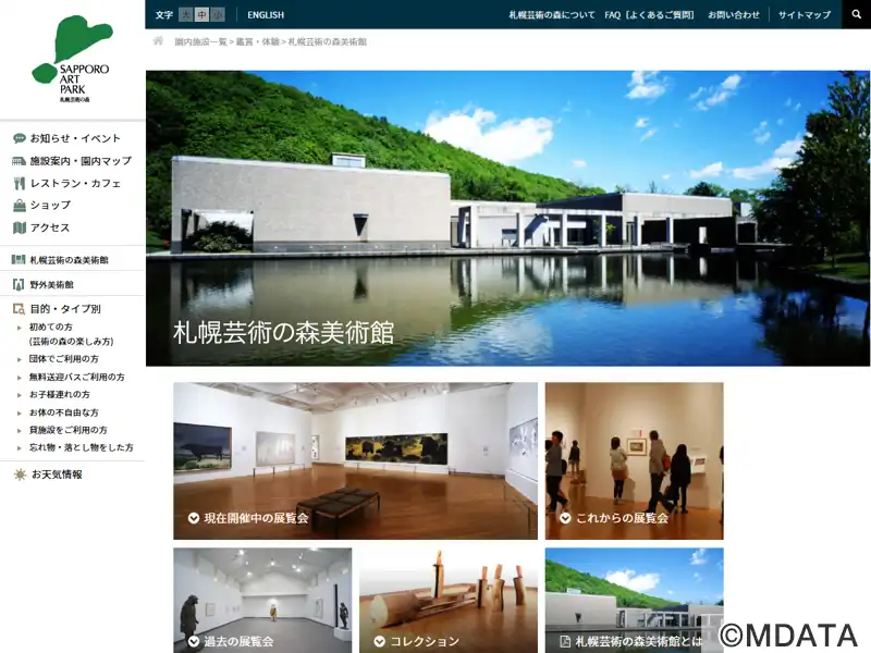 札幌市における美術文化振興の拠点として1990年に開館した美術館。コレクションは北海道ゆかりの作家や国内外の優れた近現代美術、「森」をテーマとした作品を収集。年5~7回の特別展・所蔵品展、彫刻作品の野外展示や、佐藤忠良記念子どもアトリエでのワークショップを展開する。工芸館、クラフト工房、木工房、陶工房が隣接され、広大な自然環境を生かしたアート体験と創作活動の場を提供し、北方の美術文化を発信する。