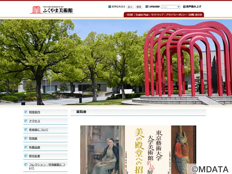 広島県福山市の福山城公園内に、市制施行70周年を記念して1988年に開館した公立美術館。コレクションは、福山市を中心とする広域圏と瀬戸内圏関連作家の作品、日本の近・現代美術、イタリアを中心とするヨーロッパ近・現代美術を軸に収集し、刀剣の小松安弘コレクション、茶道具、デザイン資料なども所蔵。年4回の所蔵品展や特別展を開催するほか、ギャラリー・ホール・多目的室を備え、美術団体の作品展なども行われる。