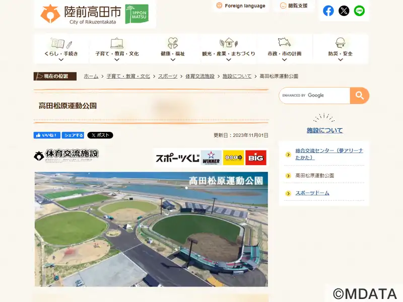 | 住所 | 陸前高田市高田町曲松116 陸前高田市高田松原運動公園 第一野球場 |