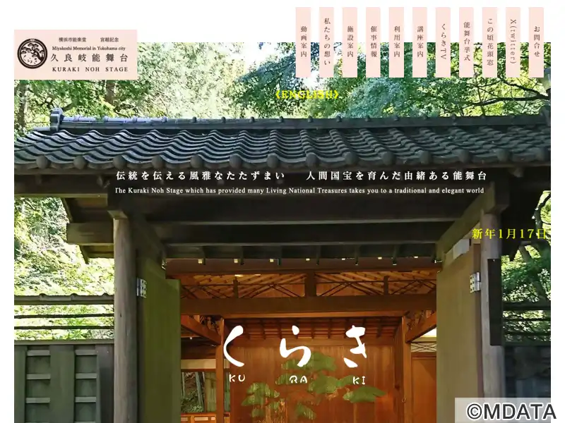 横浜市の久良岐公園北側に位置する能舞台。1917年に日比谷で建てられ、1965年に現在の場所に移築。1984年に横浜市に寄贈され、建物と池泉回遊式の日本庭園が整備された。伝統と風格を感じさせる舞台の鏡板は平福百穂の筆による老松が描かれており、橋掛かりと鏡の間、52畳の見所を備える。また、茶室と続き間の和室があり、能、狂言、日本舞踊の稽古や発表会、コンサート、茶会、句会、各種講座に利用されている。