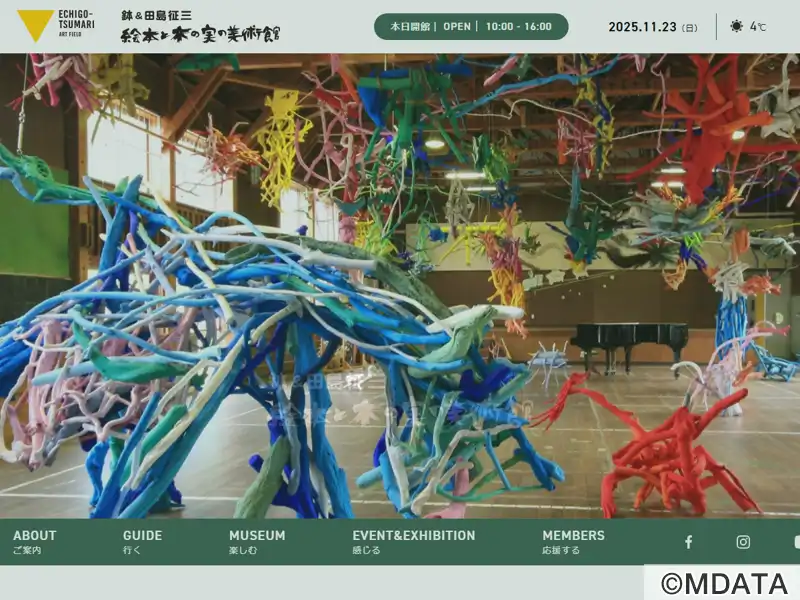 新潟県十日町市鉢集落の旧真田小学校木造校舎を活用した美術館。絵本作家・田島征三が手がけ、2009年の大地の芸術祭にあわせて開館した。最後の生徒とオバケのトペラトトを主人公に、流木や木の実、和紙のオブジェを用いた「空間絵本」として校舎全体を表現している。教室の雰囲気を残す2階展示室、企画展示室やカフェ、ショップのほか、校庭にはヤギが暮らすビオトープがあり、自然環境の再生や地域文化の継承にも取り組んでいる。
