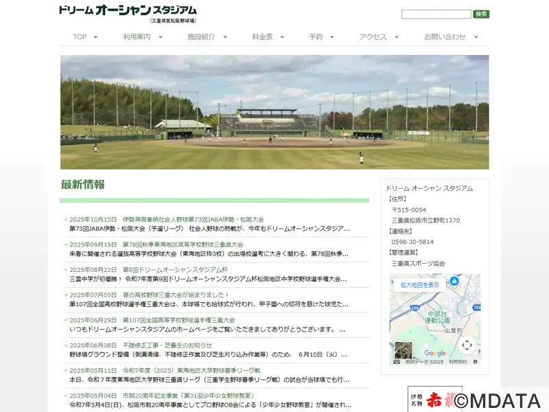 | 名称 | ドリームオーシャンスタジアム 三重県営松阪野球場(正式名) |