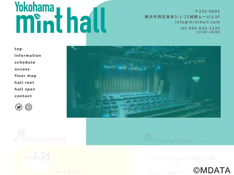 相鉄ムービル3F(旧O-SITE、相鉄本多劇場跡地)に2020年11月オープンしたイベントスペース「Yokohama mint hall」。m=Music,Memory、in、t=terrarium。たくさんの音楽が育ち、思い出の場となる箱をめざして命名。O-SITEからひきつぐ劇場型ステージと客席(前方:平床スタッキング、後方:階段状)、配信設備を導入し、多様なアーティストのライブ&エンターテイメントを発信。