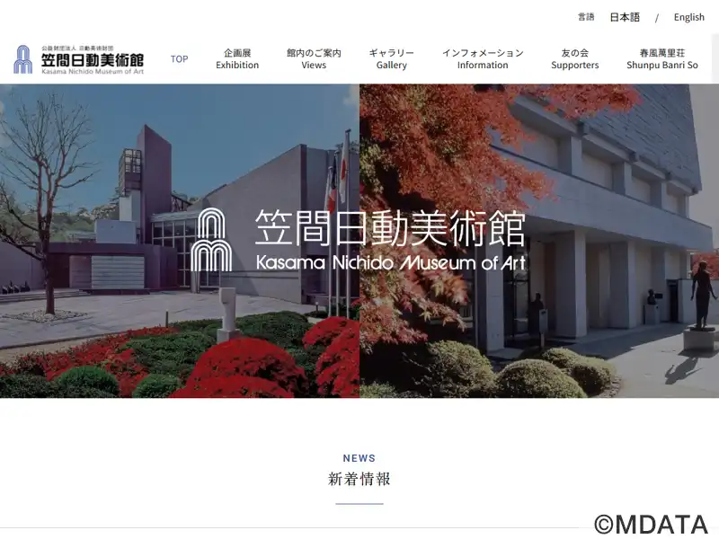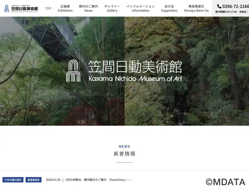 日動画廊創業者・長谷川仁の郷里、茨城県笠間市に1972年に開館した美術館。フランス印象派やエコール・ド・パリ、日本近代洋画の名品をはじめ、著名画家が使用した200点以上のパレットコレクションを収蔵している。佐白山麓のなだらかな丘陵地に位置し、フランス館・日本館・企画展示館の3館で構成。オープンテラスのカフェや、19体の具象彫刻が点在する野外彫刻庭園があり、四季折々の自然とともにアートを味わえる。