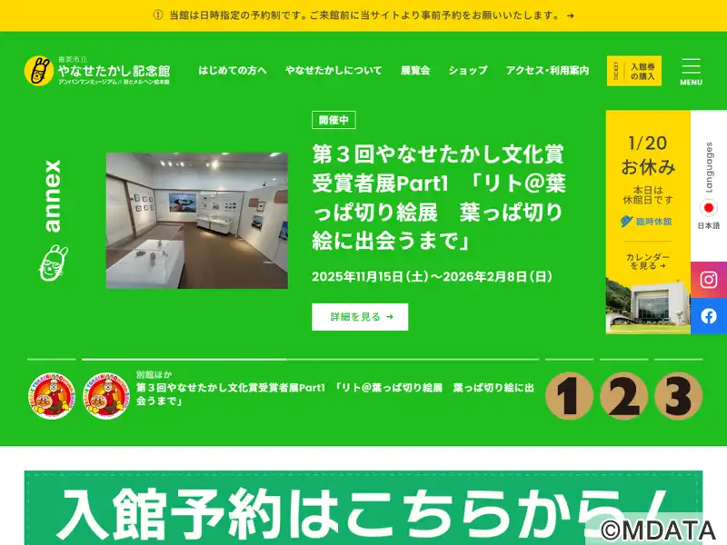 高知県香美市にある、アンパンマン作者・やなせたかしの創作世界を体験できるミュージアム。1996年開館。貴重な絵本原画を展示し、オブジェや遊び心に富んだ内容でアンパンマンの世界観を楽しめる「アンパンマンミュージアム」、雑誌『詩とメルヘン』のイラスト原画や多彩な作品を鑑賞できる「詩とメルヘン絵本館」を中心に構成。公募展などが行われる別館、記念公園、モザイクタイルのアンパンマン壁画が人気の収蔵庫がある。