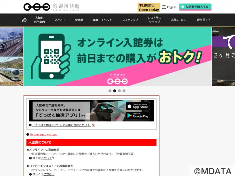 埼玉県さいたま市にある鉄道博物館。JR東日本創立20周年記念事業として2007年に開館、2018年にリニューアルした。館内は、蒸気機関車から新幹線まで36両の実物車両が展示されている車両ステーション、鉄道の原理やしくみを理解できる科学ステーション、鉄道を支える仕事を体験できる仕事ステーションなど5つの展示室から構成され、豊富な資料と模型、シミュレータなどを通じて、鉄道の歴史と技術を体験的に学べる。