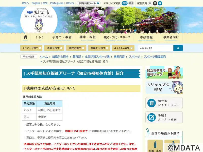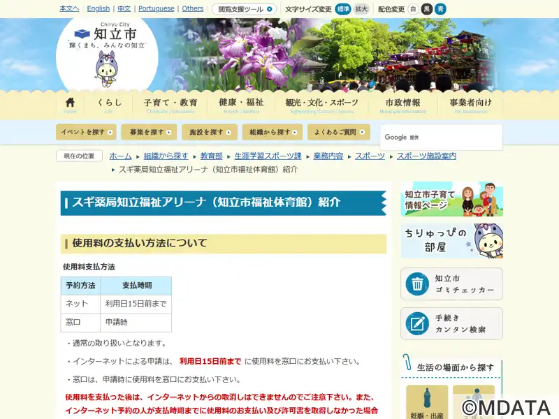 愛知県知立市におけるスポーツ振興と地域福祉の拠点として、1982年に開館した多目的スポーツ施設。児童センターや老人福祉センター、身体障害者福祉センターを併設している。2階アリーナはバスケットボール、バドミントンなど幅広い競技に対応し、ハンドボールや卓球のプロリーグ公式戦も行われる。3階には観覧席と卓球場、4階には弓道場やランニングコースを設けるほか、柔道・剣道場やトレーニングルームを備えている。