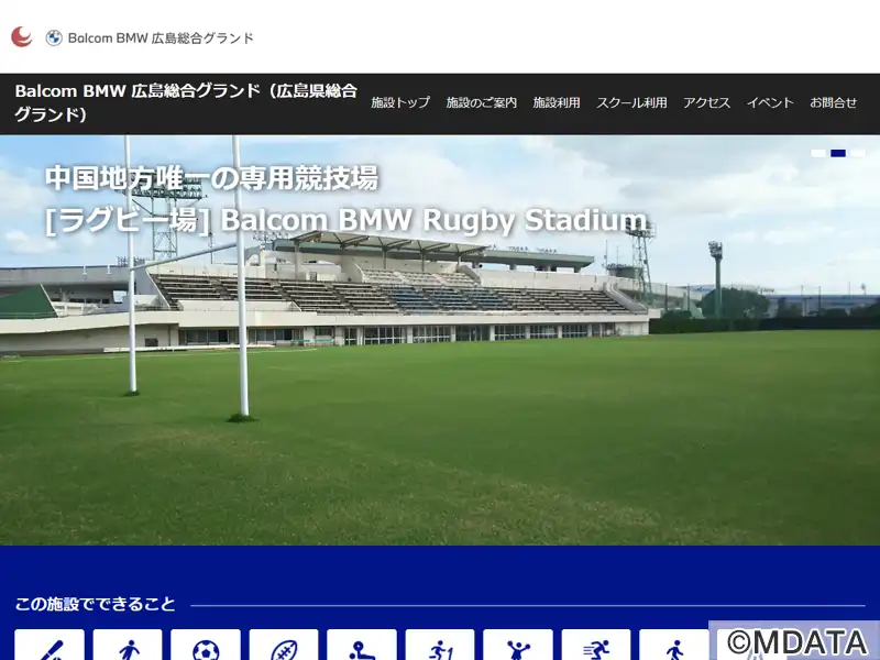 広島県総合グランド内のメインスタジアム。1996年ひろしま国体など国際大会で利用された第2種公認陸上競技場。天然芝フィールドはJリーグ開幕時の初代サンフレッチェ広島ホームスタジアムで、現在もサッカー国際試合やラグビートップリーグの試合が行われる。戦前にあった観音グラウンドがルーツとされ、爆心地の近くにありながら戦後の目覚ましい復興をスポーツと共に遂げた。2021年10月より命名権により愛称「Balcom BMW Stadium」