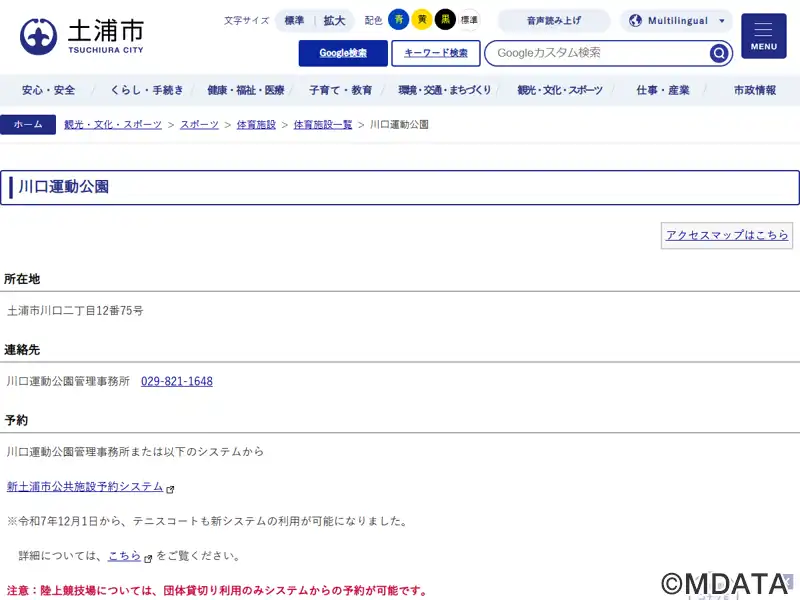 | 住所 | 土浦市川口2-12-75 川口運動公園 |