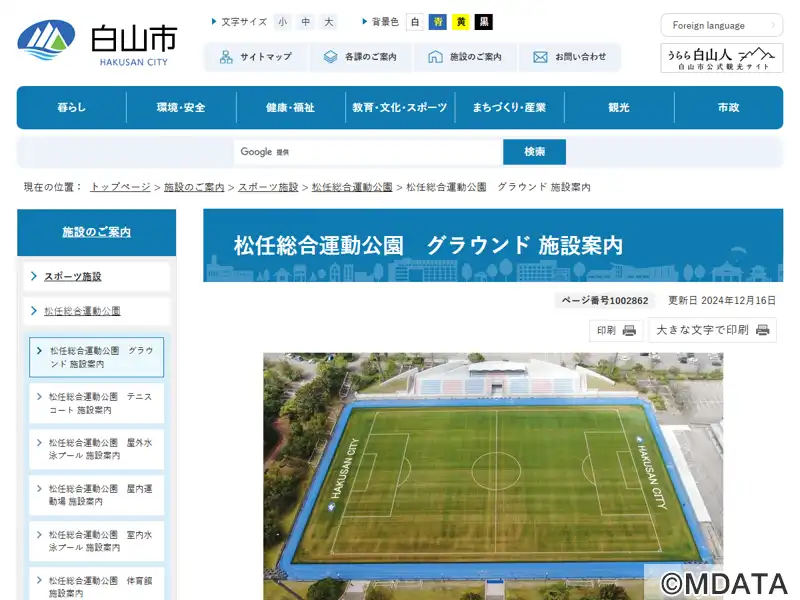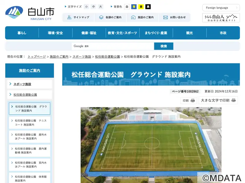 | 住所 | 白山市倉光4-22 松任総合運動公園内 |