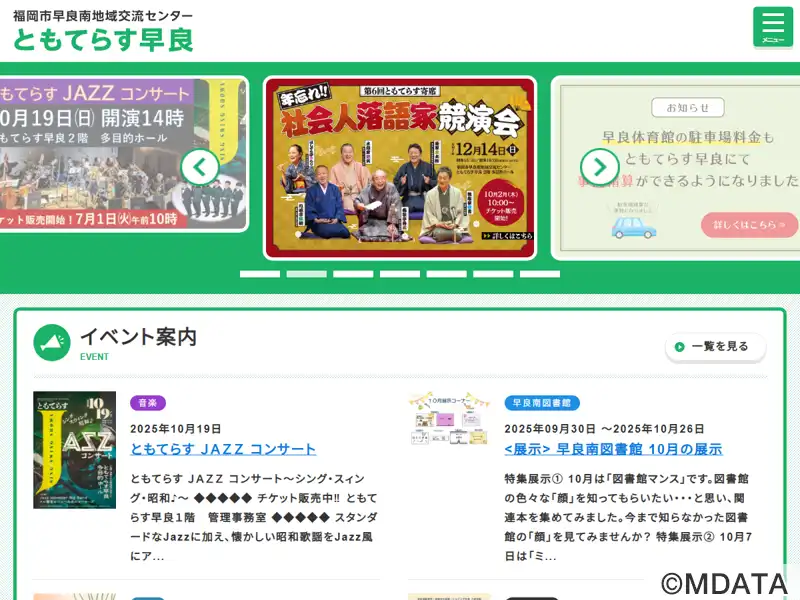 福岡・四箇田団地(早良体育館向かい)に2021年11月6日オープン。市内4館目の地域交流センターとなる早良南地域交流センター、愛称「ともてらす早良」。2階多目的ホールは木調の内装、博多献上柄をモチーフとした緞帳、YAMAHA監修の音響設備やグランドピアノを備え、コンサートや舞台公演から座席を収納した平土間利用も可能。防音の練習室や会議室、チャイルドルームのほか蔵書6万冊の「早良南図書館」を併設。