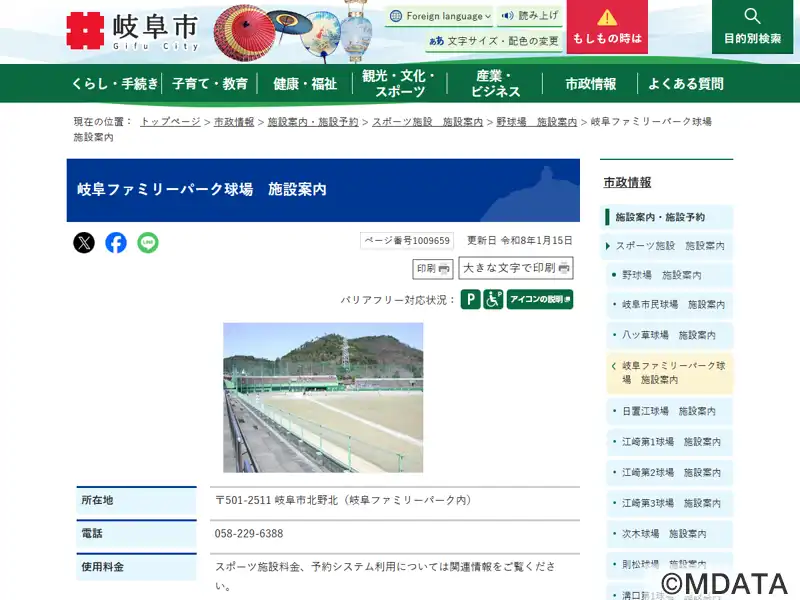 | 名称 | 岐阜ファミリーパーク野球場 |