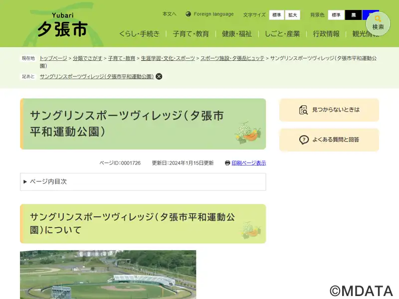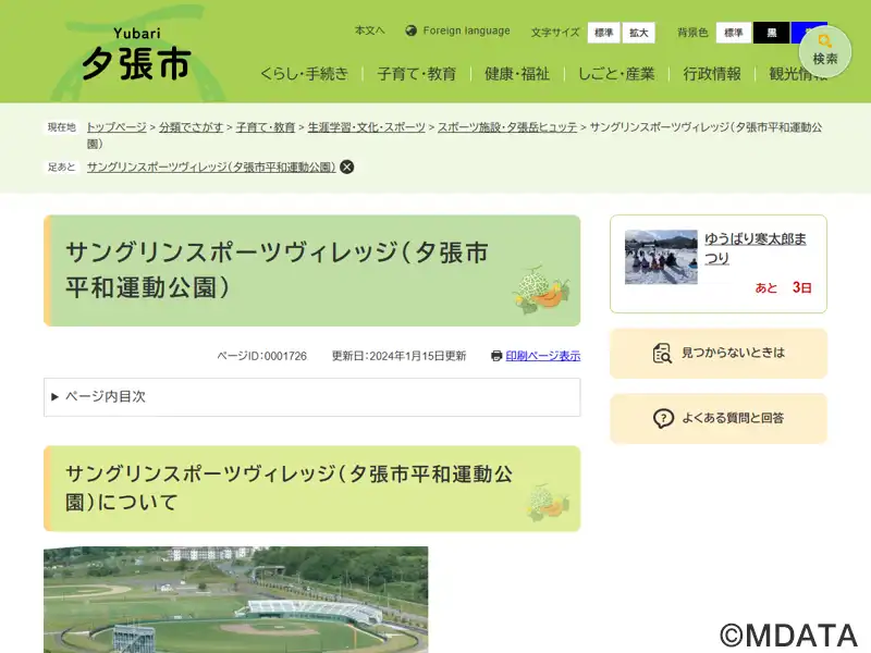 | 住所 | 夕張市平和1 夕張市平和運動公園 |