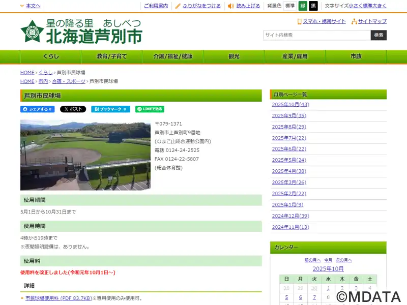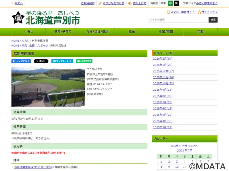 | 住所 | 芦別市上芦別町9 なまこ山総合運動公園 |