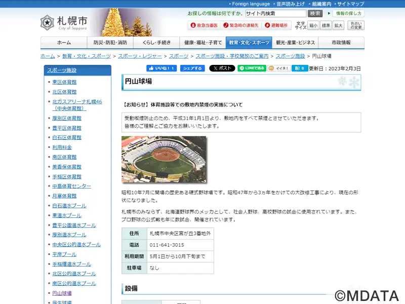 | 住所 | 札幌市中央区宮が丘3番地 円山公園 |