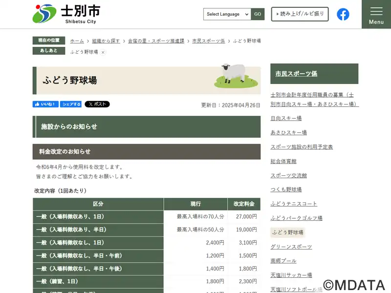 | 住所 | 士別市南士別町1612-3 士別市ふどう公園 |