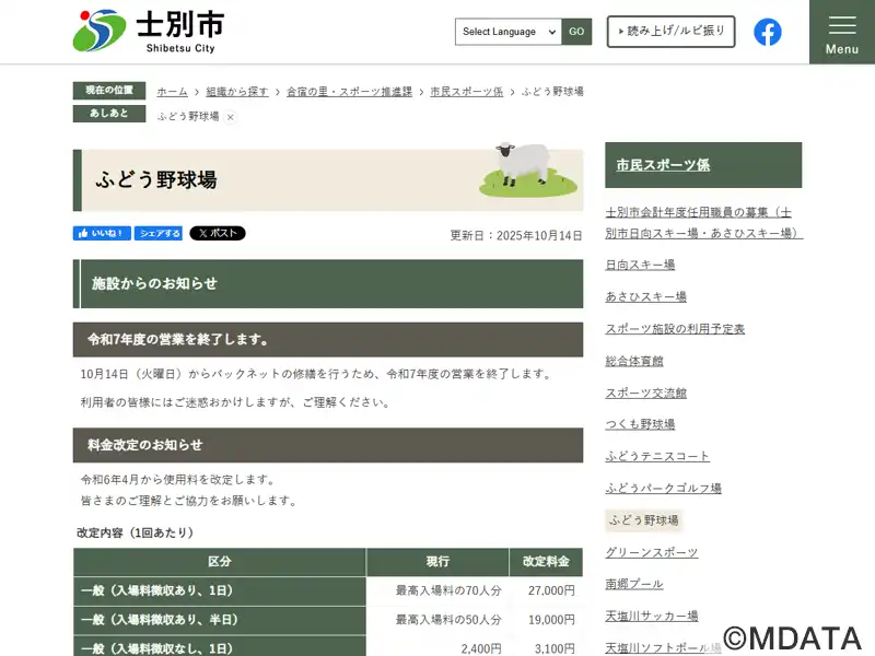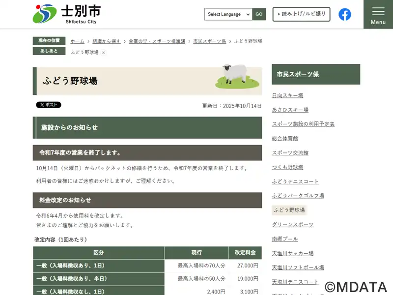 士別市ふどう野球場