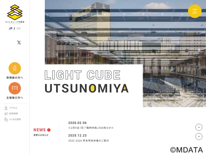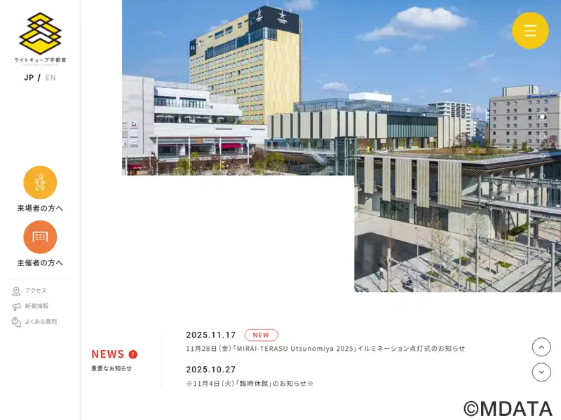 2022年11月30日オープンの宇都宮駅東口交流拠点施設。改札口からメインエントランスまで徒歩2分。最大2,000人収容可能な大ホール、固定ステージを設けた中ホール、13の会議室、各階に一体利用できる屋外の交流広場「宮みらいライトヒル」を設け、学会や大会、ビジネス展示会、レセプション、企業会議、試験開場、式典、講演会など多様なイベントニーズに応える北関東初の会議中心型コンベンションセンター。