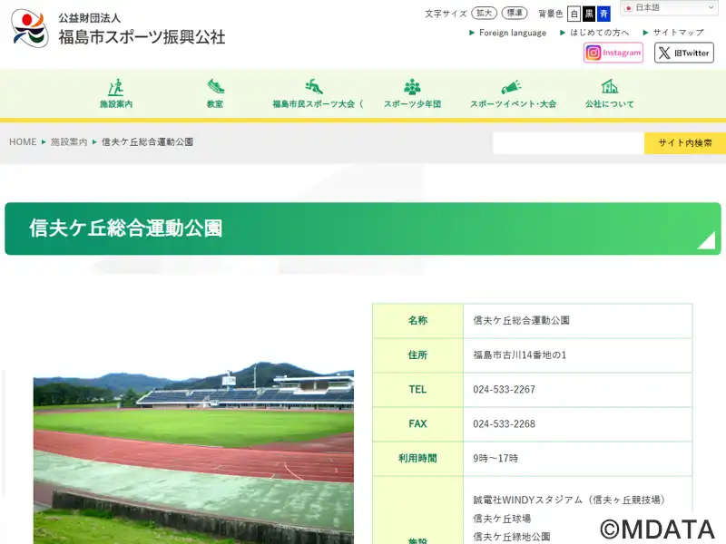 | 住所 | 福島市古川14-2 信夫ヶ丘総合運動公園 |