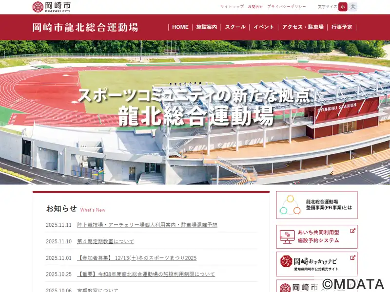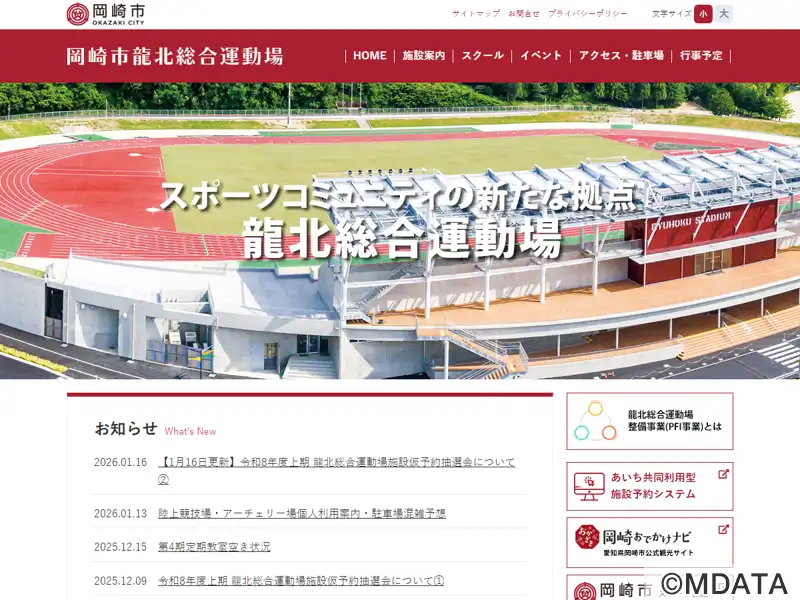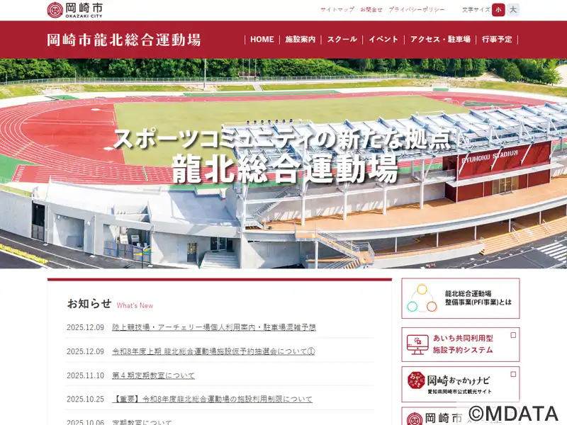 岡崎市龍北総合運動場陸上競技場(正式名) 龍北スタジアム(別名) |