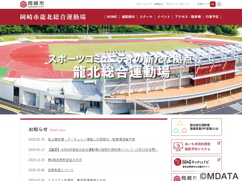 | 住所 | 岡崎市真伝町亀山12-2 龍北総合運動場 |