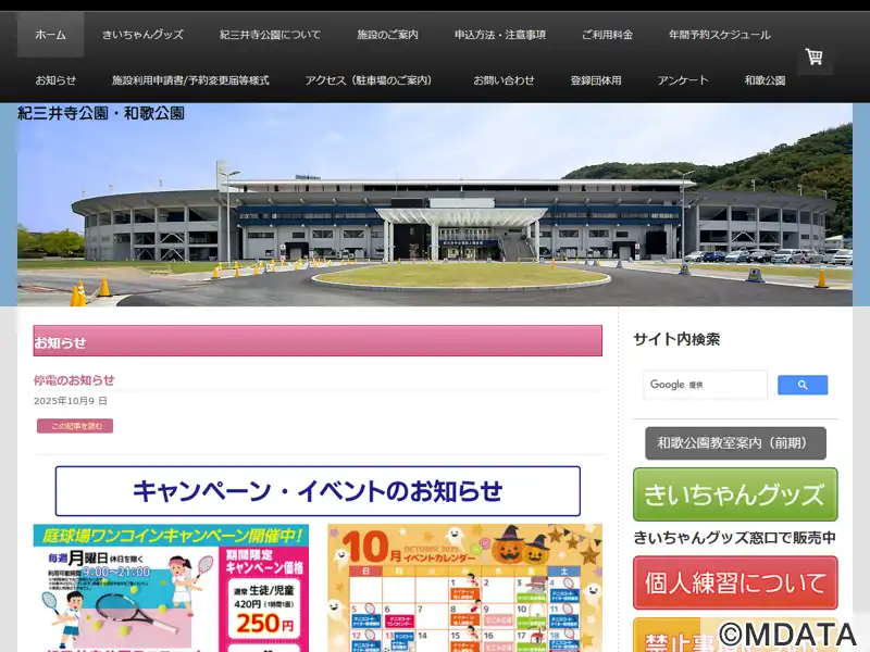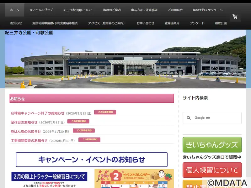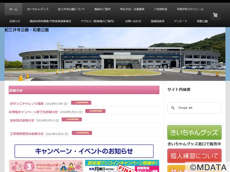 | 住所 | 和歌山市市毛見200 紀三井寺運動公園 |