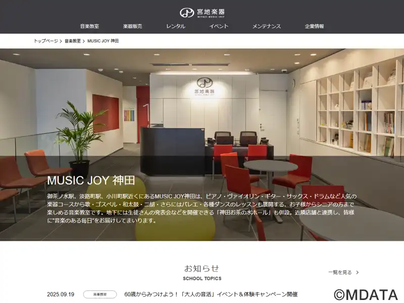 2022年4月9日「神田宮地ビル」B1Fにオープンした宮地楽器のコンサートホール。ヤマハコンサートグランドピアノCF4を常設。生音の響きを考慮した木調のフロアはキャパシティ約80名。クラシックリサイタルやアコースティック楽器のコンサート、公開レッスン形式のピアノワークショップや音楽講座などの会場に利用されている。B1F〜4Fに音楽教室「MUSIC JOY 神田」を併設している。