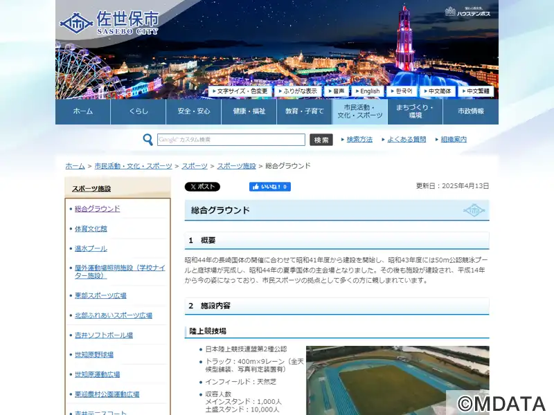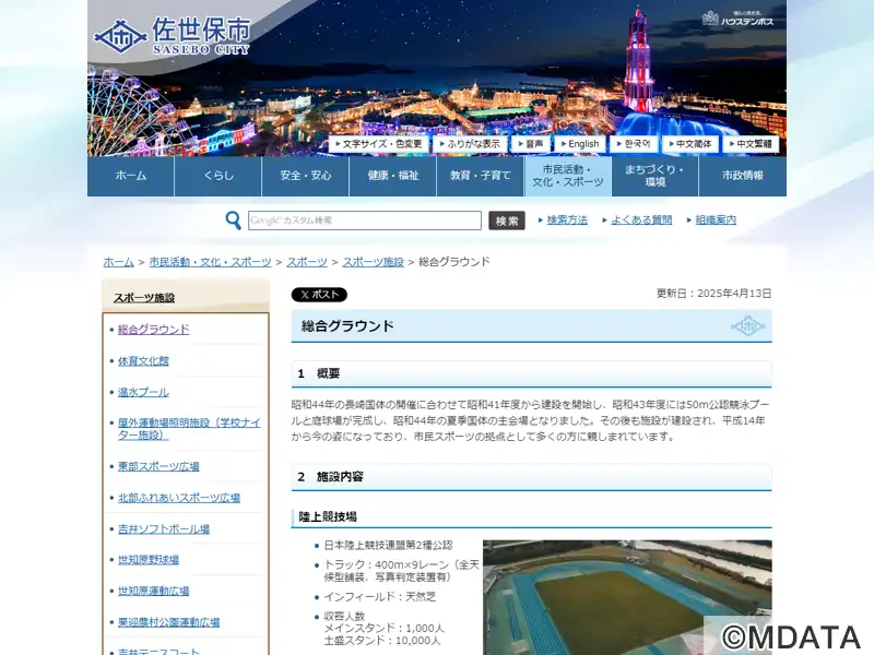 | 名称 | 佐世保市総合グラウンド陸上競技場 |