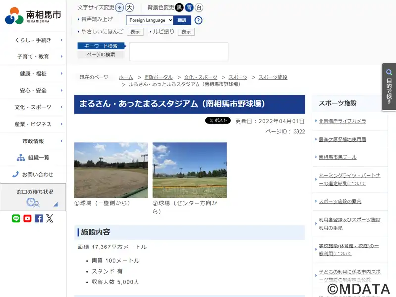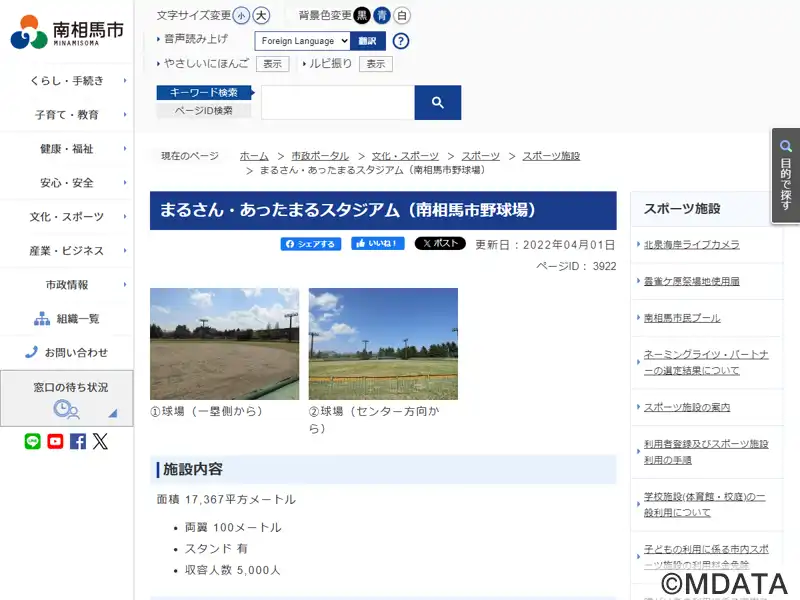 | 住所 | 南相馬市原町区桜井町2-166 原町運動公園 |